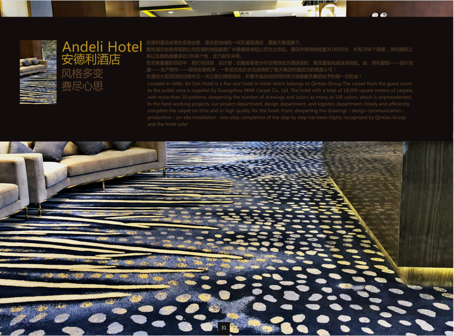 安德利酒店采用的客房及走道地毯,以精湛的工艺与卓越的品质,为宾客营造出舒适且典雅的旅居氛围,从走道到客房,每一处细节都彰显着酒店的高端定位与对品质的执着追求。