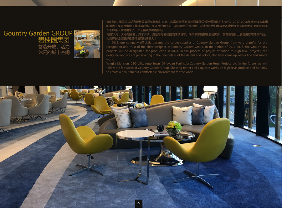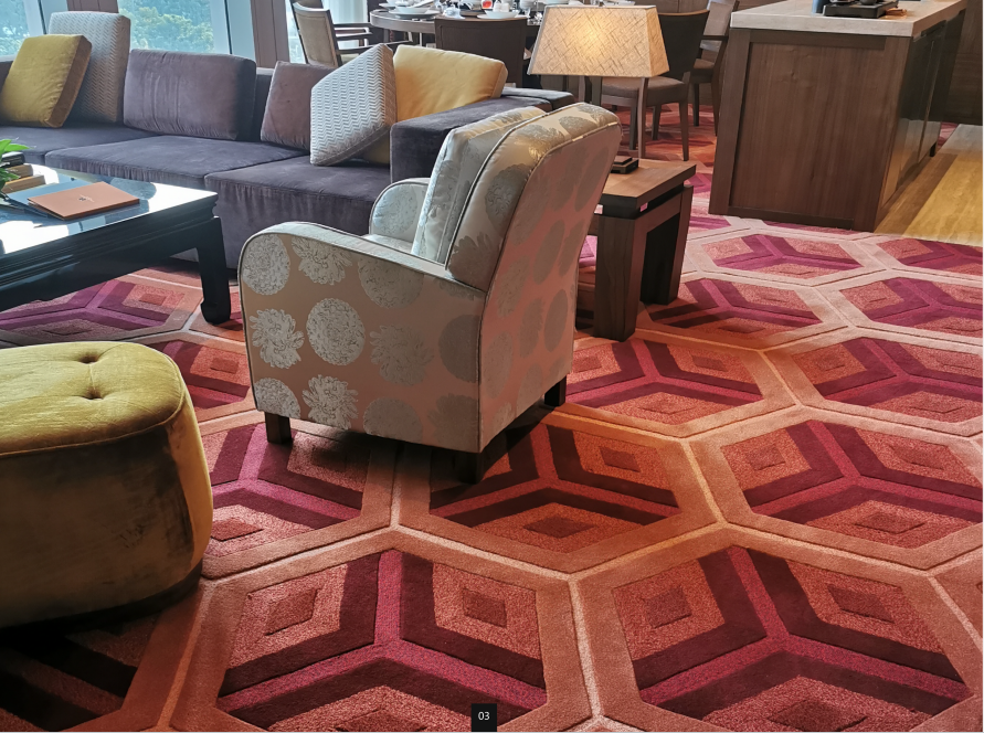 碧桂园集团所采用的高端地毯,是空间里无声的品质名片,从走道到客房,以材质、工艺与设计的三重考究,为每一步行走注入舒适与尊崇。